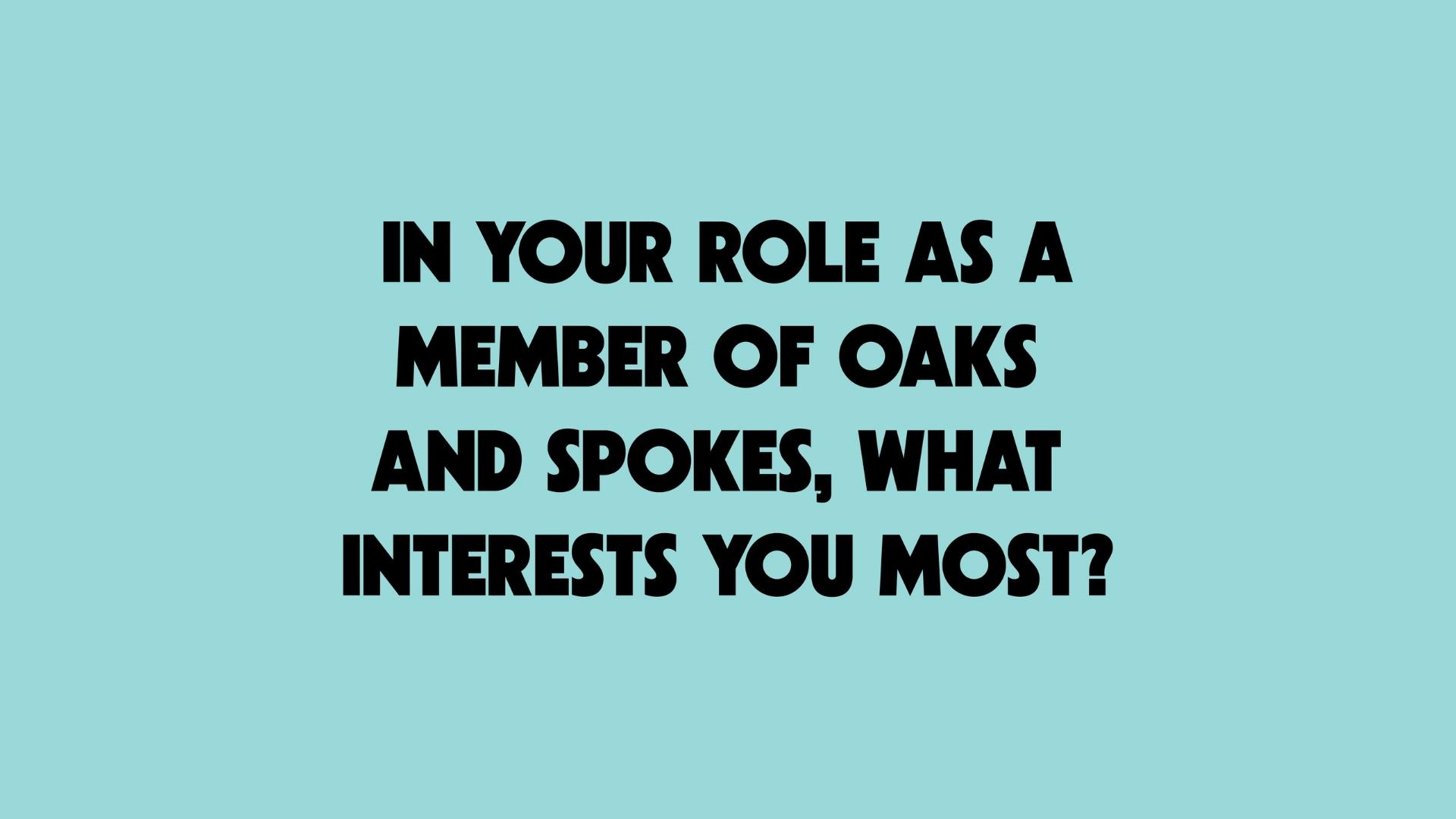 - In your role as a member of Oaks and Spokes, what interests you most?