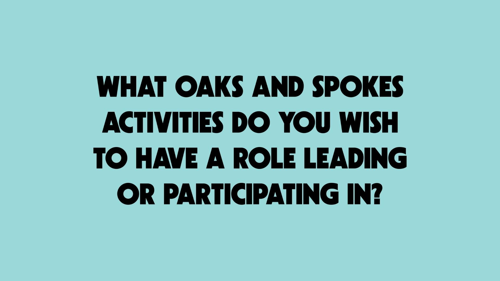 - What Oaks and Spokes activities do you wish to have a role leading or participating in?
